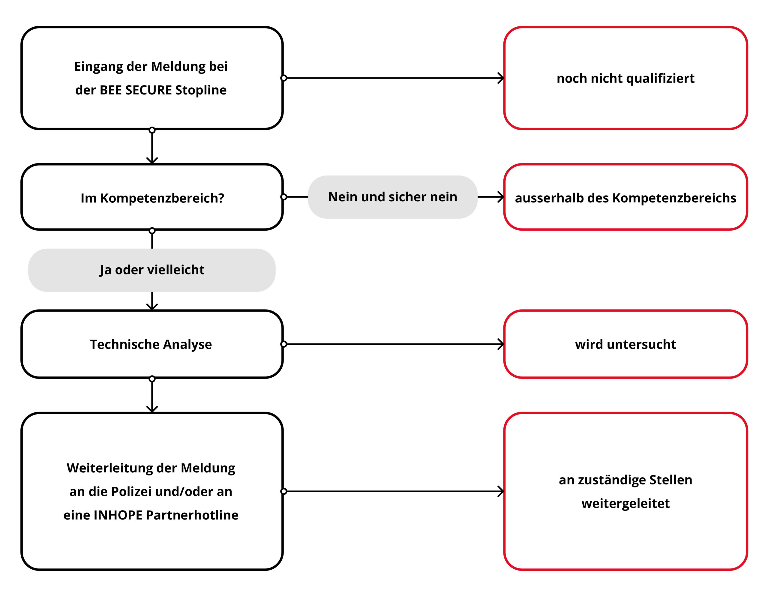 - noch nicht qualifiziert: Ihre Meldung wurde gespeichert und wird vom Team der BEE SECURE Stopline bearbeitet werden.